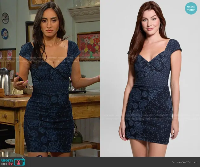 Gabi Hernandez (played by Cherie Jimenez) on Days of our Lives on Peacock was spotted wearing this blue print denim dress on Days of our Lives on Jul 17 2025's episode. Gabi's Dress is the Eco Akira Printed Denim Dress in Blue by Guess.