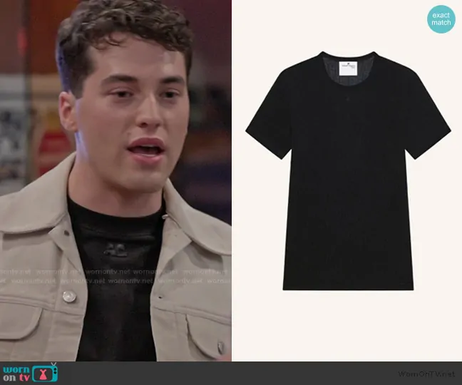 Brooks Marks on Next Gen NYC on Bravo was spotted wearing this black logo tee on Next Gen NYC on episode 'Gutter Balls & Breakup Calls' (1x08) in Jul 2025. Brooks's Shirt is the Mesh T-Shirt by Courreges.