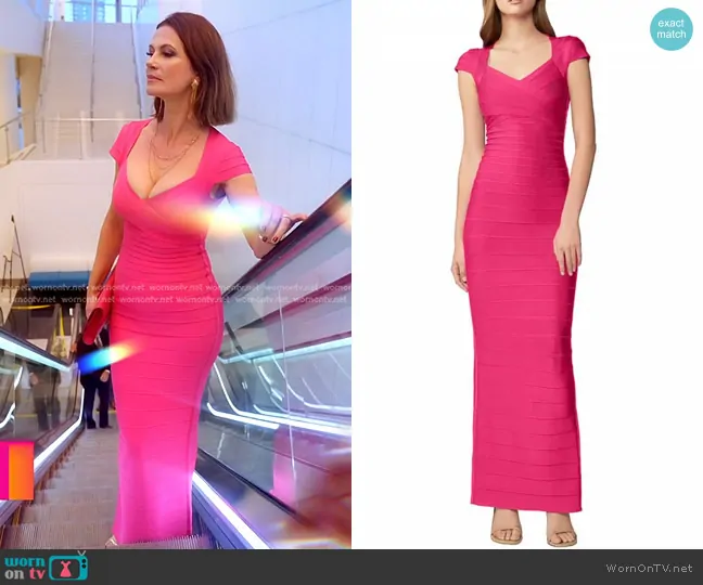 Julia Lemigova (played by Julia Lemigova) on The Real Housewives of Miami on Peacock was spotted wearing this pink bandage maxi dress on The Real Housewives of Miami on episode 'Textual Tension' (7x07) in Jul 2025. Julia's Dress is the Sweetheart Neck Bandage Dress in Pink by Herve Leger.