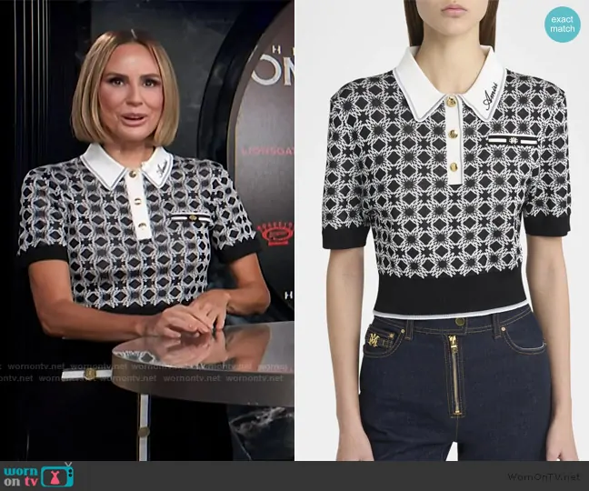 Keltie Knight on E! News on E! was spotted wearing this monogram polo and mini skirt on E! News on Jul 24 2025's episode. Keltie's Top is the Ma Quad Cropped Polo by Amiri . Keltie's Skirt is the Emi Knit Mini Skirt by L'Agence.
