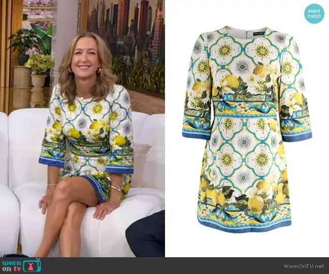 Lara Spencer on Good Morning America on ABC was spotted wearing this floral and lemon print dress on Good Morning America on Jul 25 2025's episode. Lara's Dress is the Lemon & Majolica Print Jacquard Dress by Dolce & Gabbana.