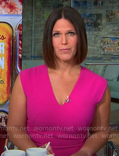 Dana Jacobson on CBS Mornings on CBS was spotted wearing this pink v-neck dress on CBS Mornings on Sep 04 2021's episode. Dana's Dress is the Fern Crepe Sheath Dress by Elie Tahari .