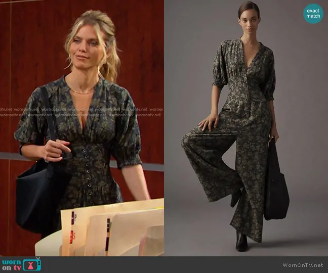 Catherina Greene (played by AnnaLynne McCord) on Days of our Lives on Peacock was spotted wearing this floral corset jumpsuit on Days of our Lives on Jul 31 2025's episode. Cat's Jumpsuit is the Puff-Sleeve Jumpsuit in Green by Anthropologie.