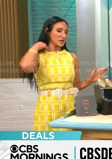 Elizabeth Werner on CBS Mornings on CBS was spotted wearing this yellow square-print dress on CBS Mornings on Mar 18 2026's episode. Elizabeth's Dress is the Printed Knee Length Dress by Milly .