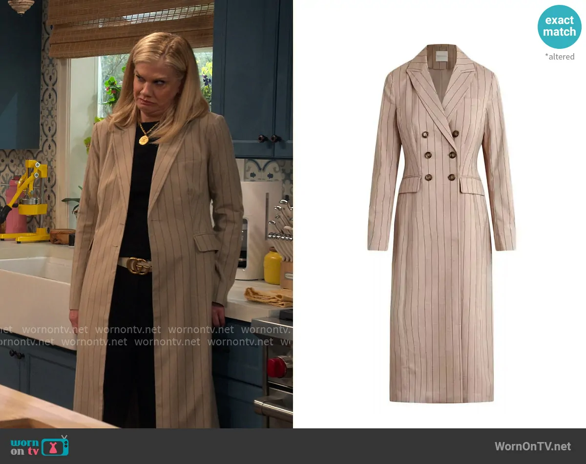 Coat: The Meyer Double-Breasted Coat in Natural Pinstripe by Favorite Daughter (altered)