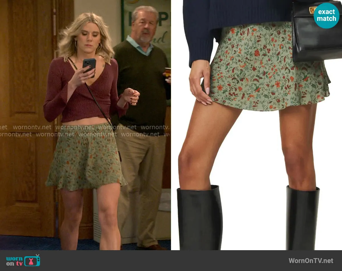 Reformation Brandy Skirt in Ponderosa worn by Josie Murphy (Hannah Pilkes) on Leanne