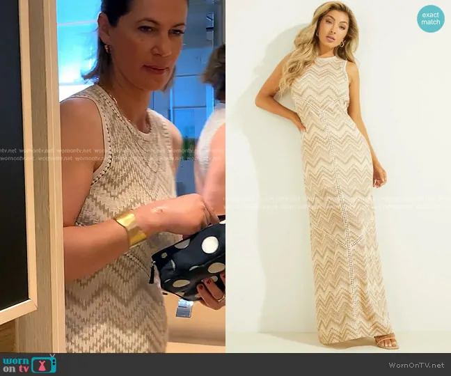 Julia Lemigova (played by Julia Lemigova) on The Real Housewives of Miami on Peacock was spotted wearing this beige zig zag dress on The Real Housewives of Miami on episode 'Dueling Yachts' (7x08) in Jul 2025. Julia's Dress is the Janet Dress by Guess.