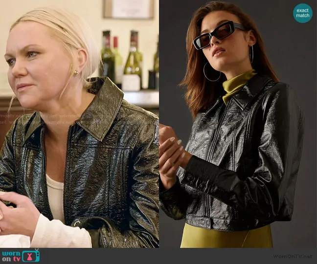 Galyna Saltkovska on The McBee Dynasty Real American Cowboys on Bravo was spotted wearing this black crinkle jacket and jeans on The McBee Dynasty Real American Cowboys on episode 'Never Seen a Rock So Big' (2x06) in Aug 2025. Galyna's Jacket is the Crinkle Leather Moto Jacket by Maeve . Galyna's Pants is the Anessa High Rise Ankle Jeans with Set in Pocket by Paige.