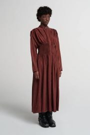 Miranda Hobbs (played by Cynthia Nixon) on And Just Like That on HBO was spotted wearing this burgundy long sleeve gathered dress on And Just Like That on episode 'Forget About the Boy' (3x11) in Aug 2025. Miranda's Dress is the Entre Rios Dress by Renata Brenha.