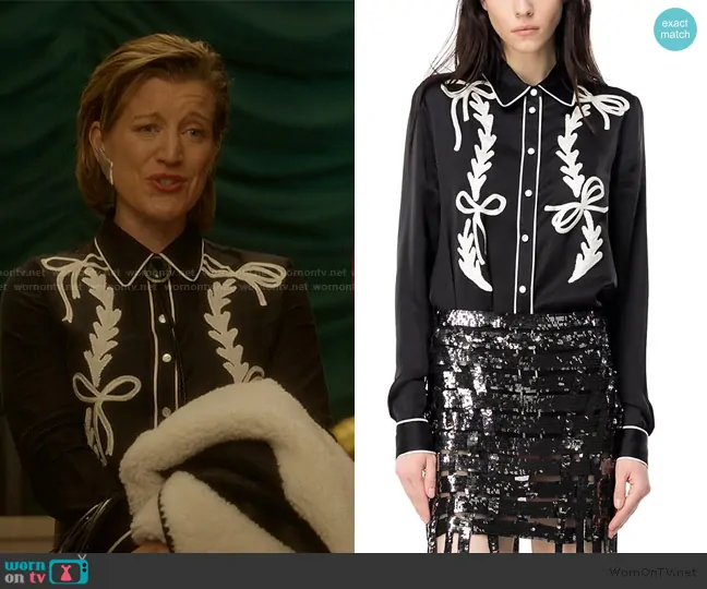 (played by ) on And Just Like That on HBO was spotted wearing this Black embroidered western shirt on And Just Like That on episode 'Forget About the Boy' (3x11) in Aug 2025. 's Top is the Chip Camicia Satin Shirt by Pinko.
