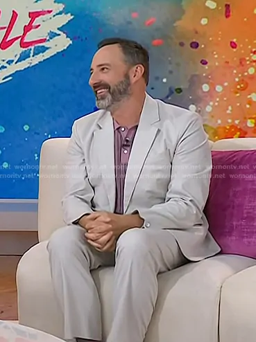 on Today on NBC was spotted wearing this pink polo and beige sneakers on Today on Aug 08 2025's episode. 's Shirt is the Harvey Striped Knit Polo Shirt in Grape by Rag & Bone . 's Shoes is the Court Vision Sneaker in Tan by Nike.