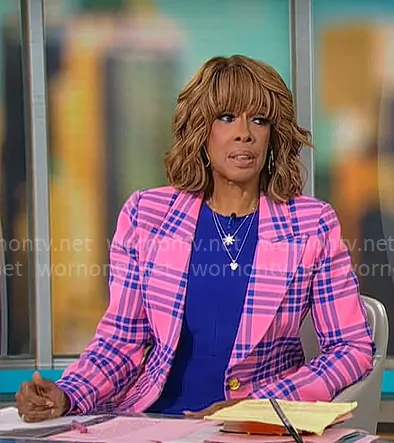 Gayle King on CBS Mornings on CBS was spotted wearing this pink plaid blazer on CBS Mornings on Aug 08 2025's episode. Gayle's Jacket is the Hutton Tailored Cotton Plaid Cutaway Blazer by Smythe .
