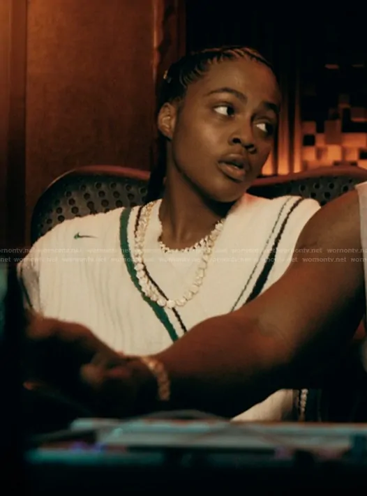 Brittany (played by Amari Noelle Ferguson) on The Chi on ShowTime was spotted wearing this knitted vest on The Chi on episode 'More Life' (7x03) in Jun 2025. 's Vest is the Knitted vest in white and green by Nike.