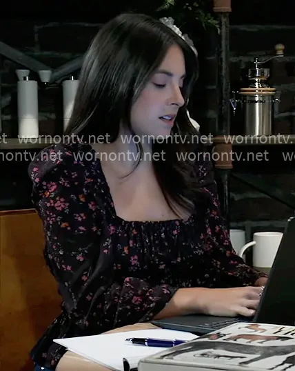 Molly Lansing-Davis (played by Kristen Vaganos) on General Hospital on ABC was spotted wearing this black floral top on General Hospital on Aug 11 2025's episode. Molly's Top is the Cinched Square Neck Blouse by Aqua .