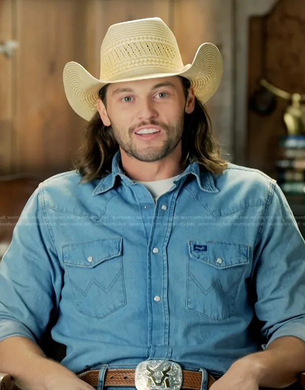 Jesse McBee on The McBee Dynasty Real American Cowboys on Bravo was spotted wearing this confessional western shirt on The McBee Dynasty Real American Cowboys on episode 'Nashville Hot' (2x07) in Aug 2025. Jesse's Shirt is the Cowboy Cut Western Denim Work Shirt by Wrangler.