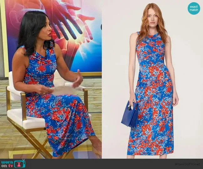 Atlein Collective Ruched Floral Midi Dress worn by Dr. Tara Narula on Good Morning America