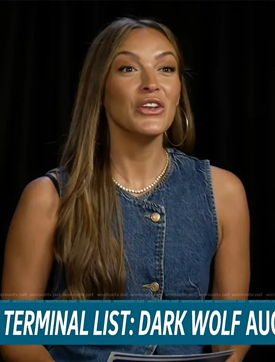 Emily Orozco on Access Hollywood on NBC was spotted wearing this denim vest on Access Hollywood on Aug 14 2025's episode. Emily's Vest is the Z1975 Denim Vest by Zara.