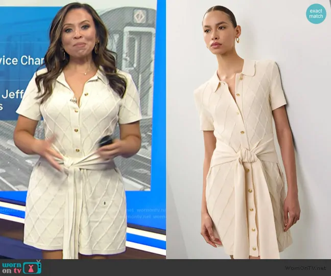 Adelle Caballero on Today on NBC was spotted wearing this tie front knit dress Dress on Today on Aug 14 2025's episode. Adelle's Dress is the Short Sleeve Mini Polo Dress by Toccin x RTR.