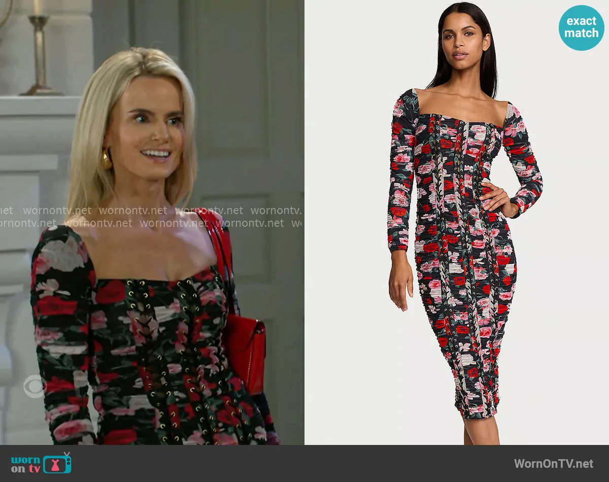 Dress: Noir Floral Shirred Mesh Lace-Up Midi Dress by Victorias Secret