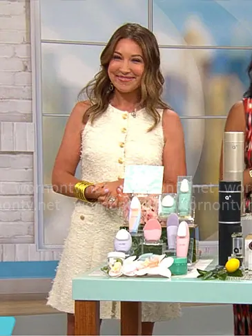 Courtney Cason on CBS Mornings on CBS was spotted wearing this white tweed dress on CBS Mornings on Aug 17 2025's episode. Courtney's Dress is the Pleated mini dress in textured tweed by J. Crew .