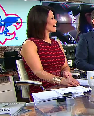 Dana Jacobson on CBS Mornings on CBS was spotted wearing this burgundy and red wavy stripe dress on CBS Mornings on Mar 09 2019's episode. Dana's Dress is the Patterned Burgundy Dress by Milly .