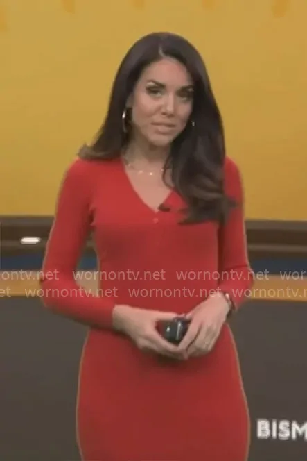 on CBS Mornings on CBS was spotted wearing this red long sleeve knit dress on CBS Mornings on Apr 02 2025's episode. 's Dress is the Cordoba Long Button Front Knit Dress by ROAM .