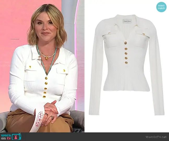 Jenna Bush Hager on Today on NBC was spotted wearing this white ribbed top and brown wide-leg pants on Today on Aug 18 2025's episode. Jenna's Top is the Belleport Top in Ivory by Cara Cara . Jenna's Pants is the Rennert Pleated Pants in Light brown by Veronica Beard.