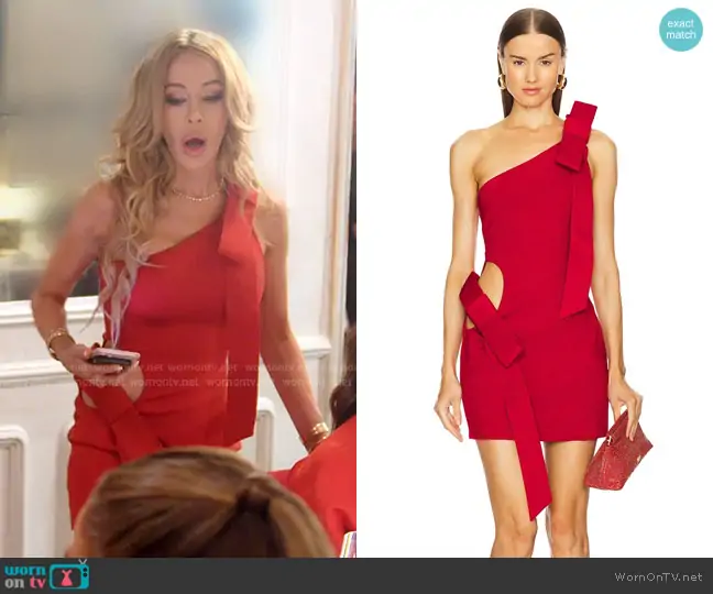 Lisa Hochstein (played by Lisa Hochstein) on The Real Housewives of Miami on Peacock was spotted wearing this red cutout bow detail dress on The Real Housewives of Miami on episode 'Unfollow or Unfriend' (7x11) in Aug 2025. Lisa's Dress is the Blendie Knit Dress in Merlot by Cult Gaia . Lisa's Shoes is the Oversized Flower Sandal by Magda Butrym.