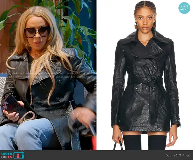 Lisa Hochstein (played by Lisa Hochstein) on The Real Housewives of Miami on Peacock was spotted wearing this black wrinkle leather trench coat on The Real Housewives of Miami on episode 'Unfollow or Unfriend' (7x11) in Aug 2025. Lisa's Coat is the Memory Leather Trench Coat by Alexander Wang . Lisa's Pants is the Unraveled Two Jeans by EB Denim . Lisa's Sunglasses is the 30Montaigne BU Sunglasses by Dior.