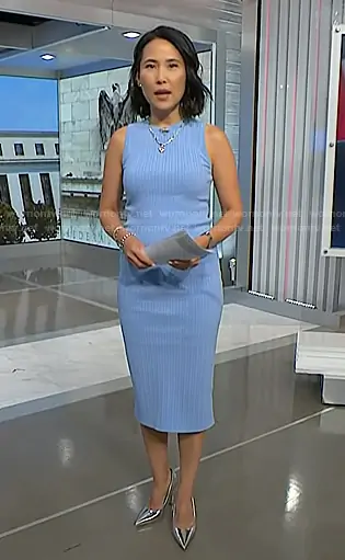 Vicky Nguyen on NBC News Daily on NBC was spotted wearing this blue ribbed sleeveless dress on NBC News Daily on Aug 26 2025's episode. Vicky's Dress is the Sleeveless Ribbed Midi Sweater Dress by Theory.