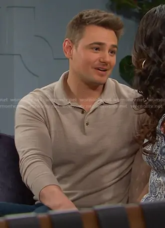 Johnny DiMera (played by Carson Boatman) on Days of our Lives on Peacock was spotted wearing this beige long sleeve polo on Days of our Lives on Aug 28 2025's episode. Johnny's Shirt is the Merino Wool Polo Shirt in Wheat Melange by Reiss.