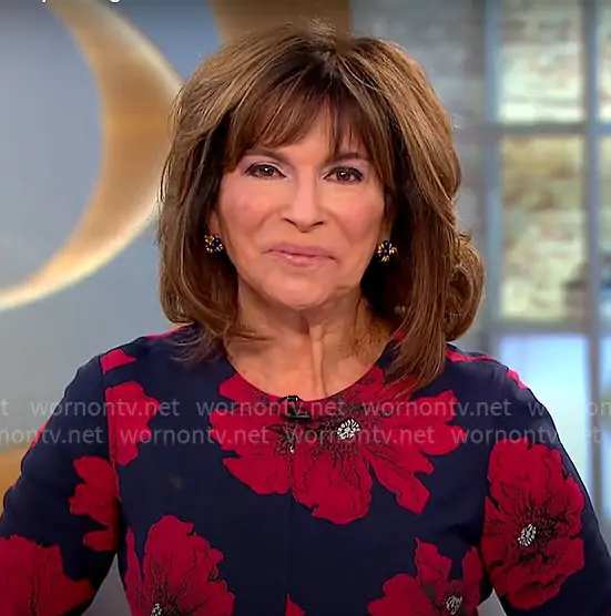 on CBS Mornings on CBS was spotted wearing this red floral dress on CBS Mornings on Apr 17 2018's episode. 's Dress is the Poppy Print Dress by Lela Rose .