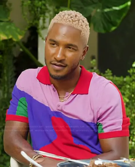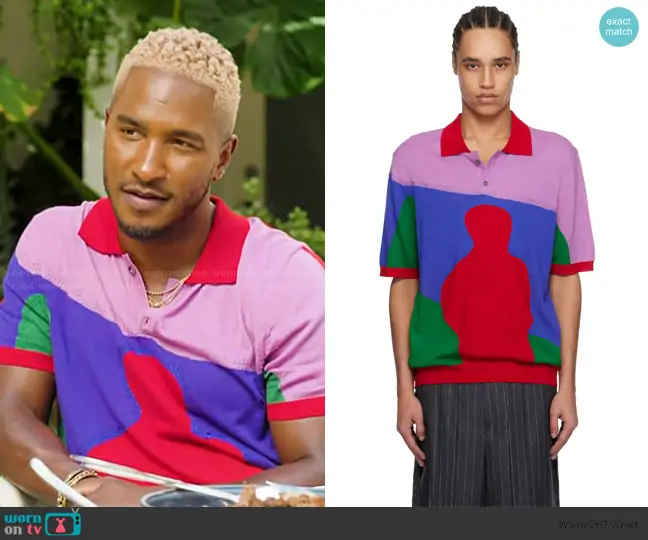 Scott Evans on Access Hollywood on NBC was spotted wearing this colorblock polo on Access Hollywood on Sep 01 2025's episode. Scott's Shirt is the Red & Multicolor Boy Knitted Polo by Glass Cypress.