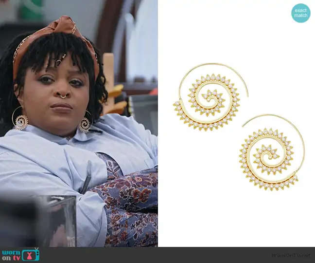 Earrings: Arushi 14K Goldplated Cubic Zirconia Spiral Hoop Earrings by Shashi