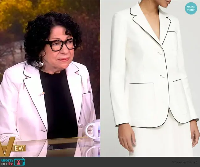 on The View on ABC was spotted wearing this white piping blazer on The View on Sep 09 2025's episode. 's Blazer is the Glove Piped Lambskin Leather Blazer by Lafayette 148 New York.