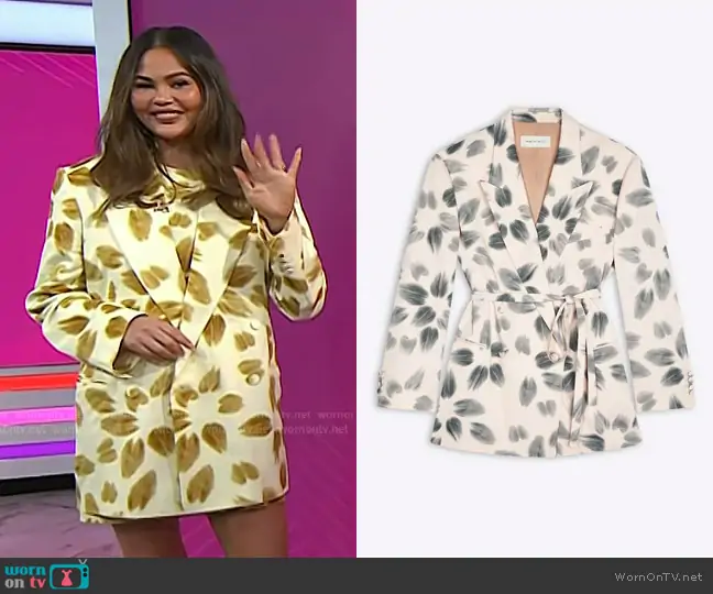 on Today on NBC was spotted wearing this yellow print oversized blazer on Today on Sep 09 2025's episode. 's Jacket is the Oversized Printed Blazer by Dries van Noten . 's Shoes is the Satin Eva D'Orsay Pumps in Pastel Yellow by Tom Ford.