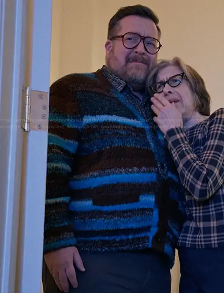 Howard (played by Michael Cyril Creighton) on Only Murders in the Building on Hulu was spotted wearing this space dye knit cardigan on Only Murders in the Building on episode 'After You' (5x02) in Sep 2025. 's Sweater is the Blue Toile Broken Stripe Cardigan by Todd Snyder.