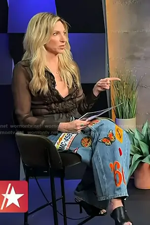 on Access Hollywood on NBC was spotted wearing this patch jeans on Access Hollywood on Sep 09 2025's episode. 's Pants is the Trish Jean by Alice + Olivia x Bronco.
