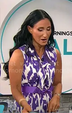 Elizabeth Werner on CBS Mornings on CBS was spotted wearing this purple printed dress on CBS Mornings on Sep 10 2025's episode. Elizabeth's Dress is the Sleeveless Dress by Oscar de la Renta .