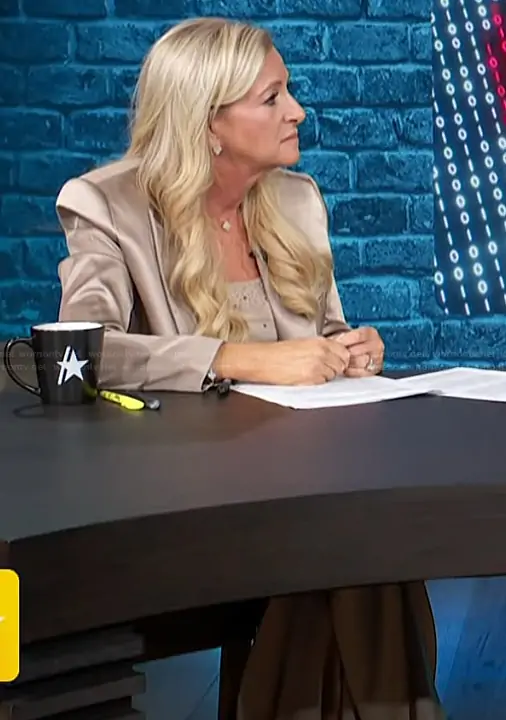 on Access Hollywood on NBC was spotted wearing this satin blazer on Access Hollywood on Sep 10 2025's episode. 's Blazer is the Ashlynn Satin Single-Breasted Blazer by Elie Tahari.