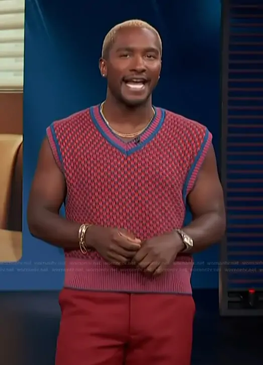 Scott Evans on Access Hollywood on NBC was spotted wearing this knit vest on Access Hollywood on Sep 11 2025's episode. Scott's Vest is the Contrast Knit Vest by Zara.