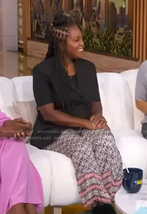 on Good Morning America on ABC was spotted wearing this printed pants on Good Morning America on Sep 11 2025's episode. 's Pants is the Printed Wide-Leg Pants by Nekane.
