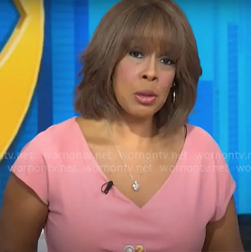 Gayle King on CBS Mornings on CBS was spotted wearing this pink v-neck dress on CBS Mornings on Mar 19 2020's episode. Gayle's Dress is the Surplice Neck Dress by Roland Mouret .