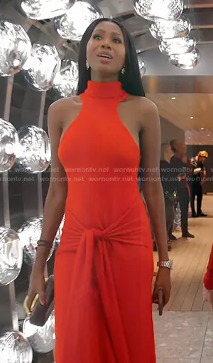 Kiki Barth (played by Kiki Barth) on The Real Housewives of Miami on Peacock was spotted wearing this red tie front knit dress on The Real Housewives of Miami on episode 'Birthday Blues Cruise' (7x15) in Sep 2025.