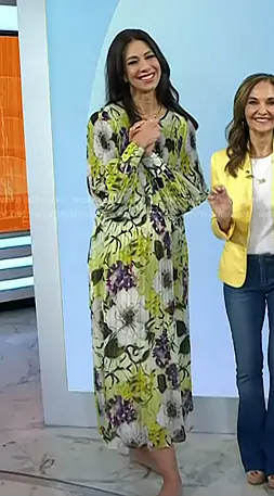 Dr. Natalie Azar on Today on NBC was spotted wearing this floral pleated dress on Today on Sep 13 2025's episode. Natalie A's Dress is the Florere Printed Blouson Sleeve Midi Dress by Reiss.