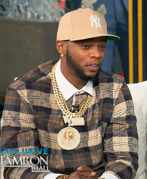 Louis Vuiton Monogram Flannel Long-Sleeved Polo Shirt worn by Papoose on Tamron Hall Show
