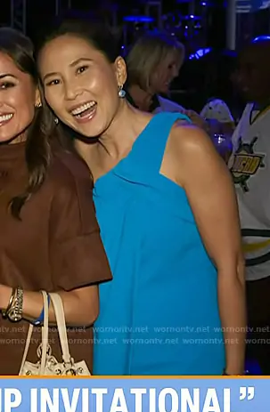 Vicky Nguyen on Today on NBC was spotted wearing this blue one-shoulder dress on Today on Sep 15 2025's episode. Vicky's Dress is the Plumeria One-shoulder Dress in Seaside by Trina Turk.
