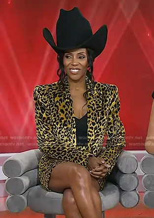 on Today on NBC was spotted wearing this leopard blazer and skirt on Today on Sep 15 2025's episode. 's Jacket is the Embellished Cropped Blazer in Cheetah by Sergio Hudson . 's Skirt is the High Waist Mini Skirt in Cheetah by Sergio Hudson.