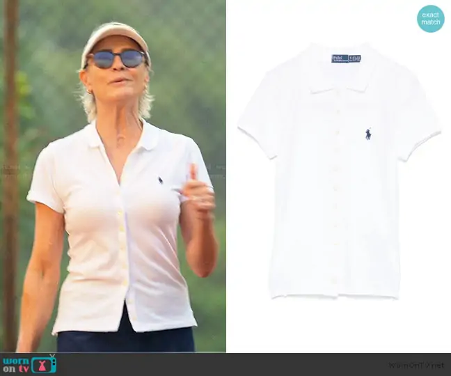 Laura Sanderson (played by Robin Wright) on The Girlfriend on Amazon Prime was spotted wearing this white tennis top and skirt on The Girlfriend on episode 'Episode 2' (1x02) in Sep 2025. Laura's Top is the Polo Pony-embroidered shirt by Ralph Lauren . Laura's Skirt is the Wimbledon Embroidered-Logo Stretch-Woven Mini Skort by Ralph Lauren.