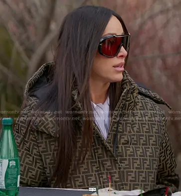 Angie Katsanevas on The Real Housewives of Salt Lake City on Bravo was spotted wearing this brown logo puffer jacket on The Real Housewives of Salt Lake City on episode 'Hot Dogs and Hearsay' (6x01) in Sep 2025. Angie K's Jacket is the Hooded Coated Canvas-jacquard Ski Jacket by Fendi.